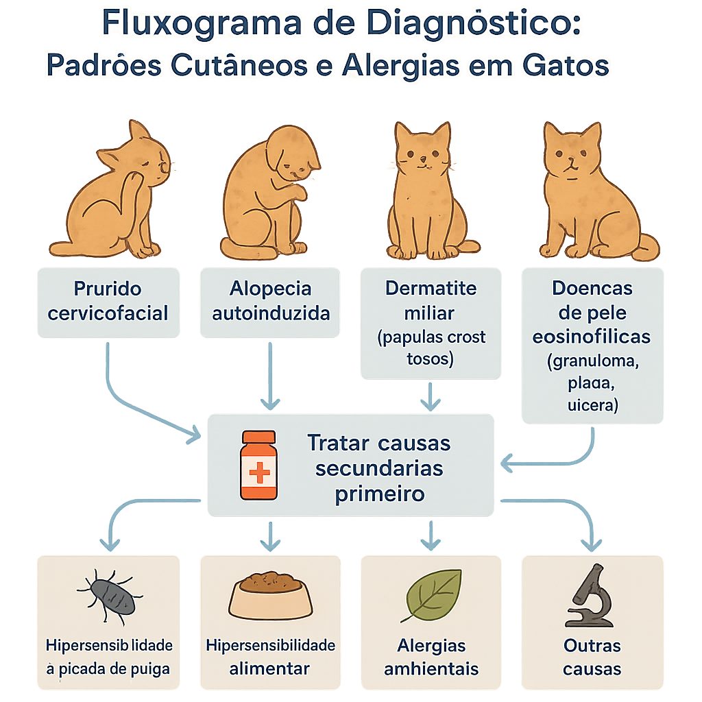 Lembre-se: cada padrão cutâneo é um convite para olhar além da superfície e buscar a causa real. O segredo está em tratar o gato — e não apenas a pele.