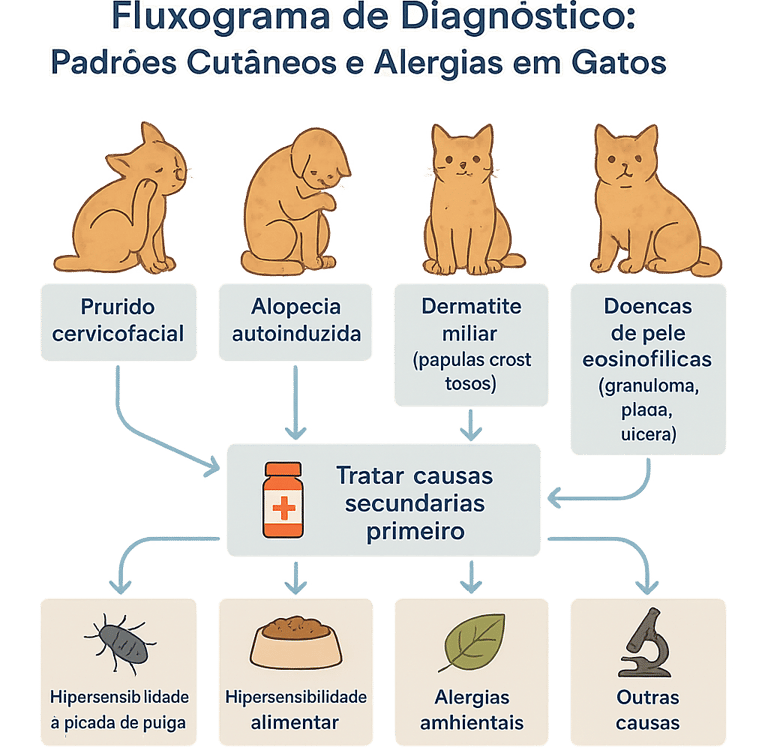 Alergias Felinas: Como Cada Padrão Pode Apontar para a Causa