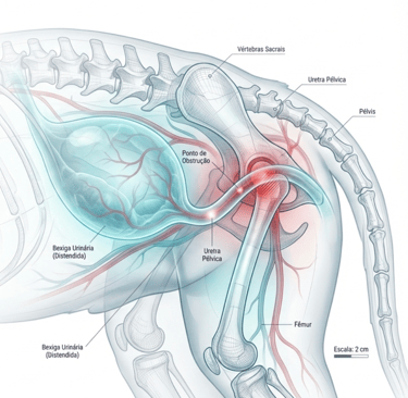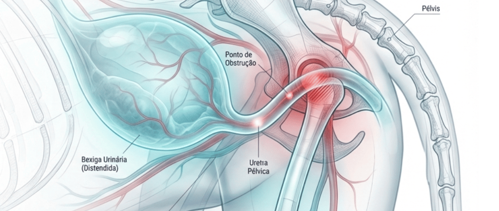 A obstrução uretral (OU) em felinos é uma das emergências urológicas mais frequentes, complexas e potencialmente letais na prática de pequenos animais. Como uma manifestação severa da Doença do Trato Urinário Inferior Felino (DTUIF), a OU afeta quase exclusivamente machos devido à anatomia longa e estreita da uretra peniana, que predispõe ao bloqueio. Sem tratamento, a morte pode ocorrer em 3 a 6 dias devido a distúrbios metabólicos severos, principalmente a hipercalemia.