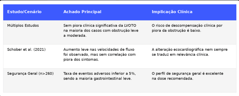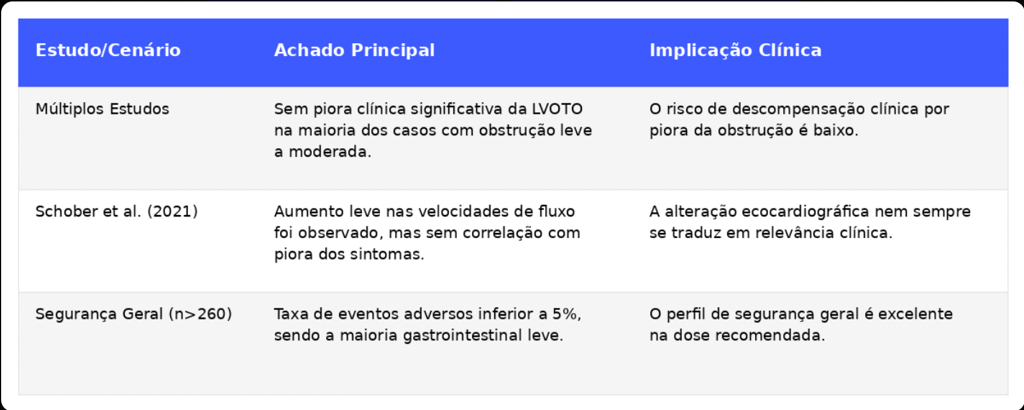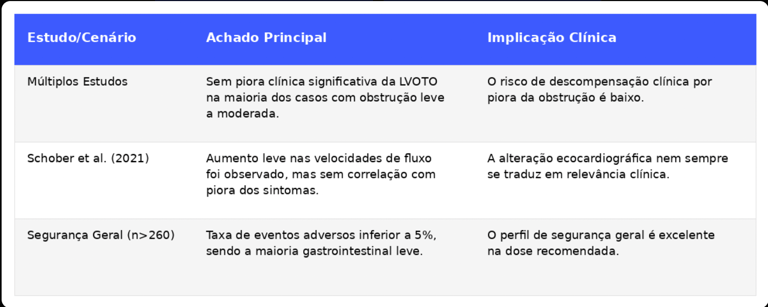A principal barreira para o uso do pimobendan em gatos sempre foi o receio de exacerbar a LVOTO em pacientes com CMH. A lógica era simples: um inotrópico positivo poderia aumentar a força de contração do septo hipertrofiado, piorando o gradiente de pressão. No entanto, a revisão das evidências pinta um quadro muito mais tranquilizador.